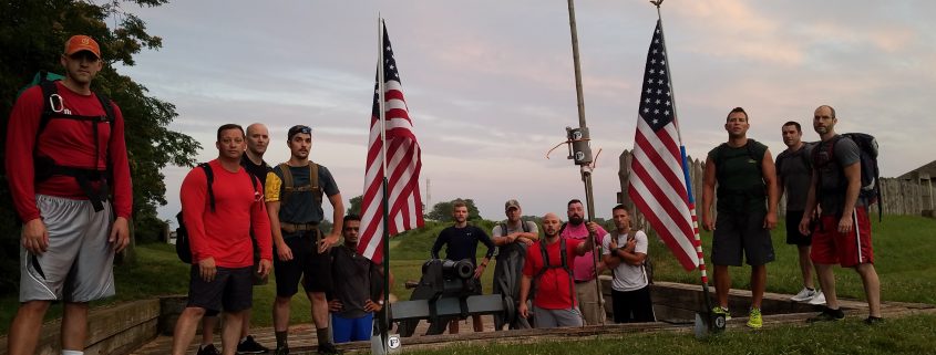 Ruck with weighted packs, two shovel flags, Betty the Bell, one painting ladder, and five 1 gallon paint cans. Nine items total so every man was always carrying something. The mission of the ruck was to help cover up some graffiti that contained profanity and slurs in Side Cut Metropark. We started with some “Squats for Tots” who was running late. The PAX performed squats with packs on until Tots arrived. We then headed out down West Indiana Ave. to cut through Fort Meigs Cemetery. We proceeded down Maumee Western Reserve to cross over the Maumee-Perrysburg Bridge and into Side Cut.